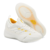 • Стильный и универсальный дизайн: Белый верх с яркими желтыми акцентами делает эти кроссовки не только функциональными, но и стильными. Они легко сочетаются с различной спортивной одеждой, добавляя яркости вашему образу на площадке.