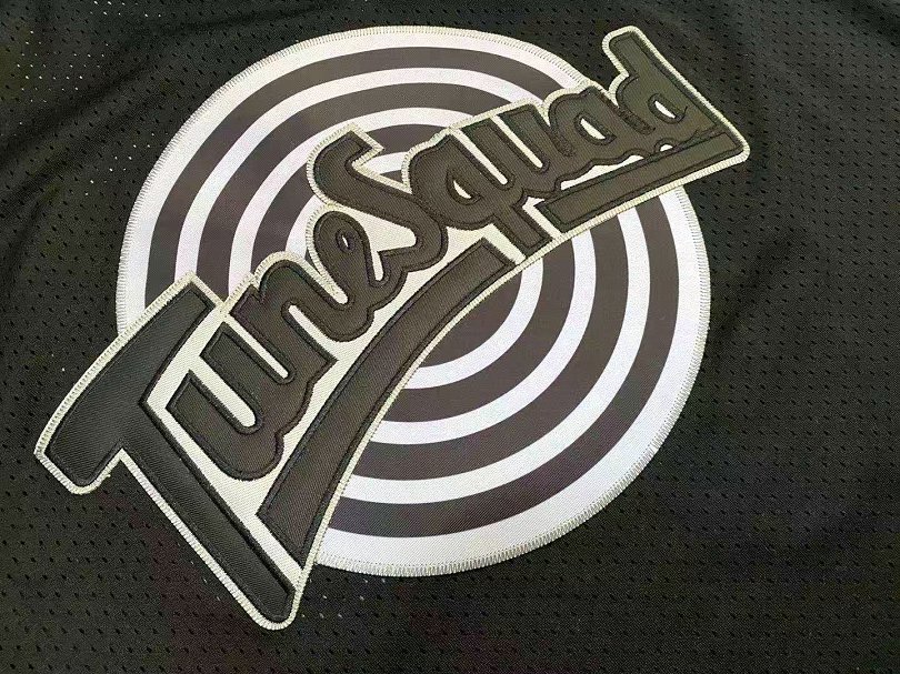 Черная расцветка с яркими акцентами и надписью “TUNE SQUAD” на груди мгновенно переносит в атмосферу фильма, где Джордан и его мультипликационные друзья сражались с инопланетными Монстрами.