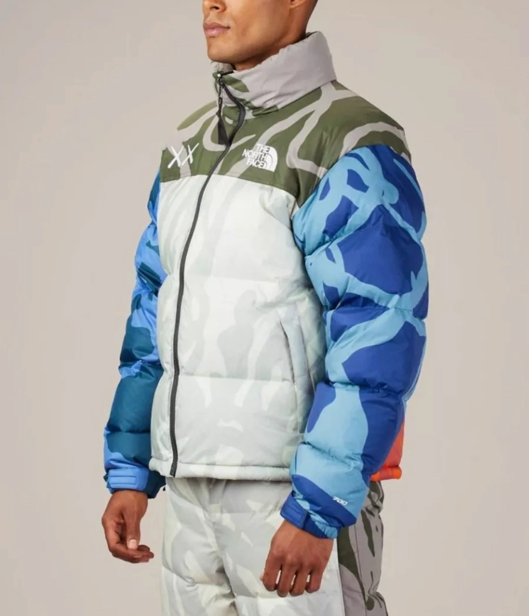Коллаборация The North Face x KAWS — это одно из самых громких событий в мире стритвира. Художник Брайан Доннелли (KAWS) переосмыслил легендарный силуэт Nuptse 1996, превратив его в холст для своего уникального стиля. Расцветка “Moonlight Ivory” представляет собой сложный абстрактный паттерн в светлых, «лунных» тонах, который делает каждую куртку уникальным объектом коллекционирования.