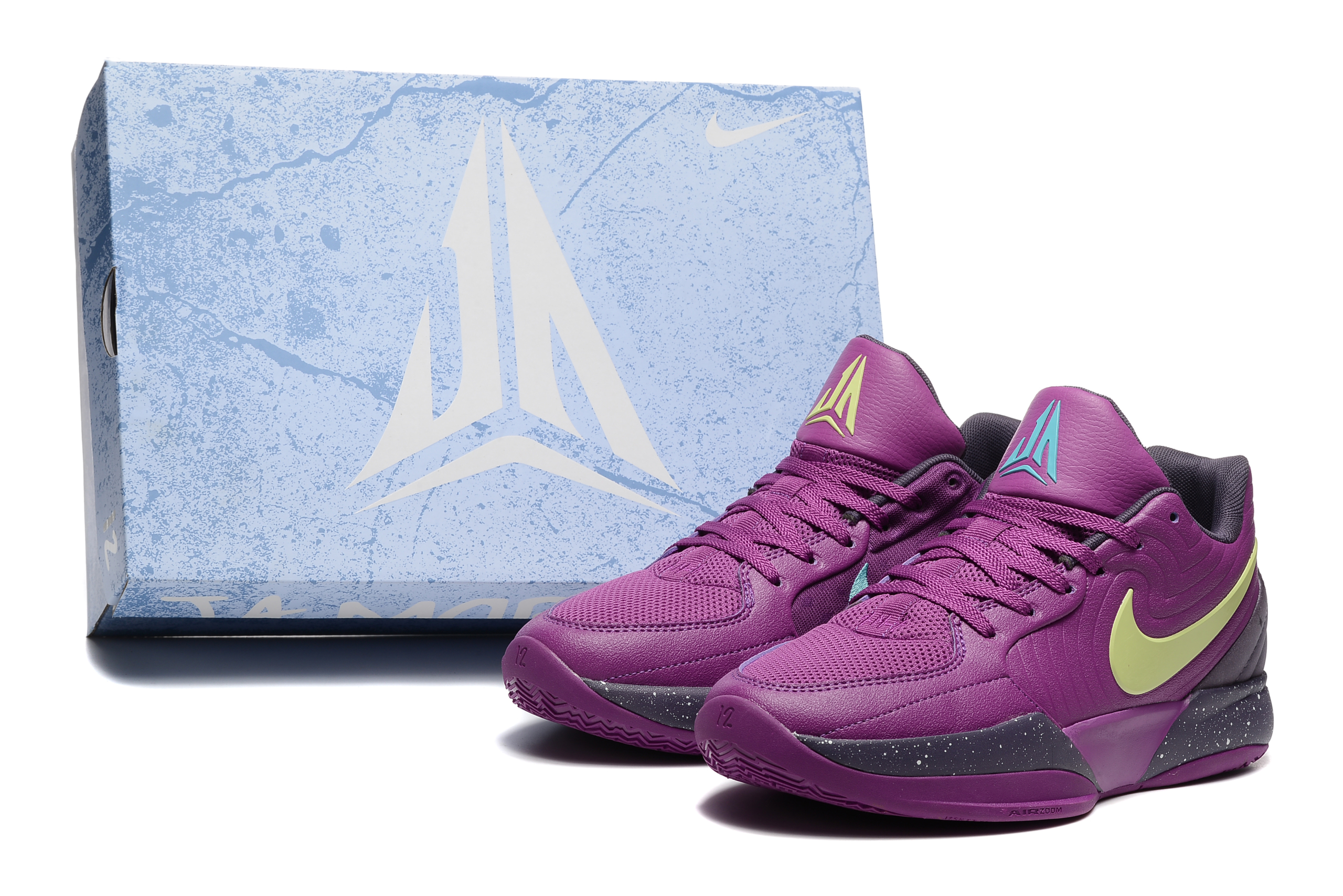 - Детализация: Фирменный логотип Джа Моранта расположен на язычке, а надпись “12 AM” на заднике добавляет уникальности дизайну.